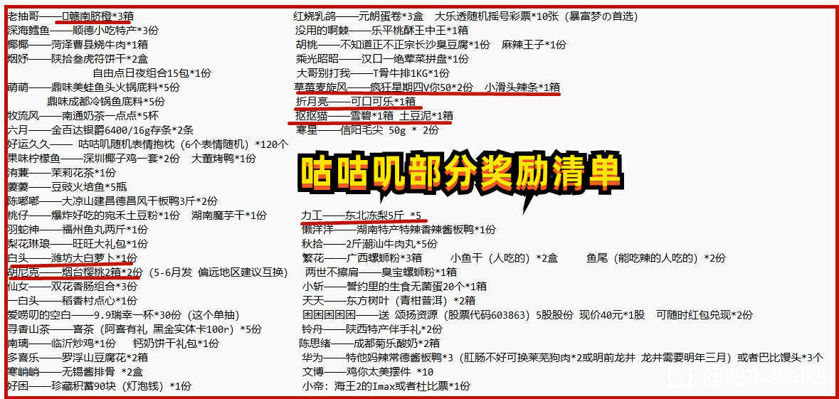 我们甚至能从咕咕叽帮众贴出的已发放奖品记录中,看到超级大乐透彩票、鸡你太美摆件、杜比电影票和KFC疯狂星期四V你50,这些令人啼笑皆非的奖品。