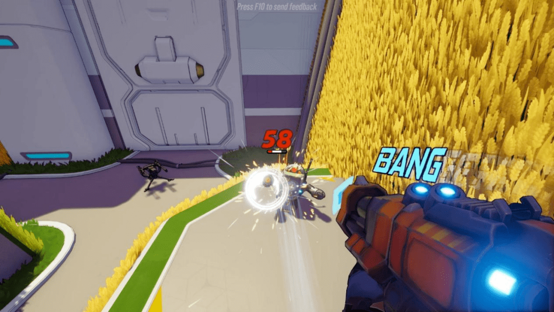 在画风上,游戏采用的是美式漫画粗描边的风格。在这种画风的加持下,画面制作算是十分精致,不论是特效还是模型搭建上都特别用心。比如枪口的火花以及过热发红效果,还有拟声词一同在枪口旁出现,子弹打在地上玩家都能清晰的看到泥土飞溅。甚至是加速移动的风速效果等等,让玩家如同真的在漫画世界一般身临其境。