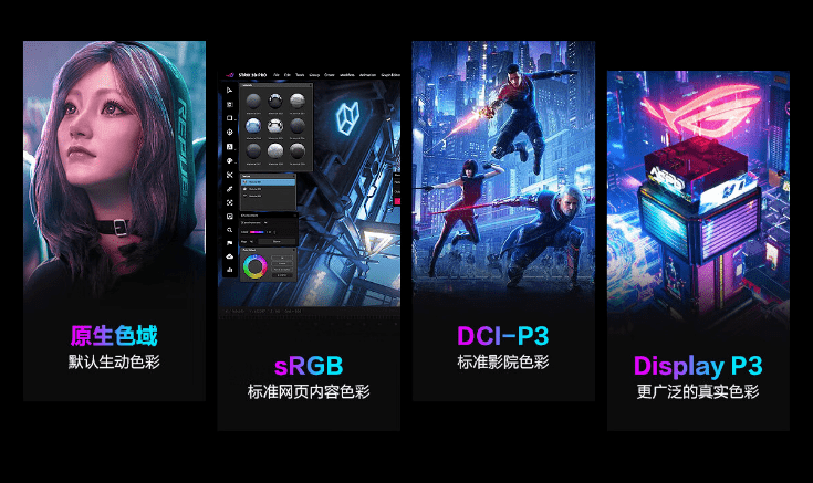 不仅如此,屏幕还覆盖了100%DCI-P3专业广色域,支持4种色域切换功能。丰富绚烂的色彩,让游戏里的每个画面,都更加真实、鲜活,更具感染力!更能满足不同场景的使用需求,无论哪一种都能惊艳到您。