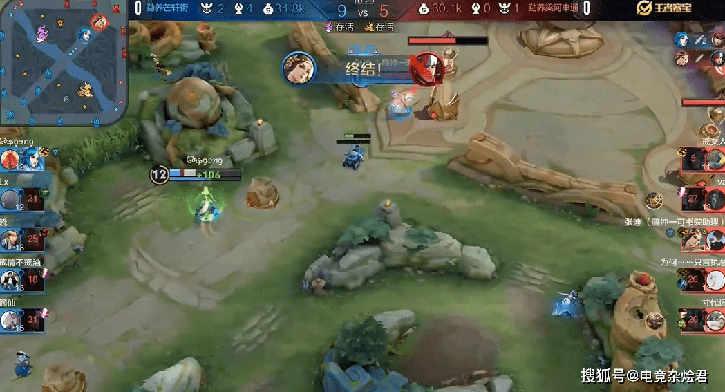 就在芒轩街想要一波直接干掉梁河申通的时候,梁河申通选择了固守,尽可能拖延时间。结果这一波团战十分惨烈,双方在野区爆发团战,最终一直打到基地塔下,团战才宣告结束。而这一局比赛,也打出了梁河申通的气势,在劣势的情况下,还完成了4换4的好成绩。随后梁河申通全力防守,芒轩街也无法攻破防御。游戏一直持续到29分钟,才分出胜负。