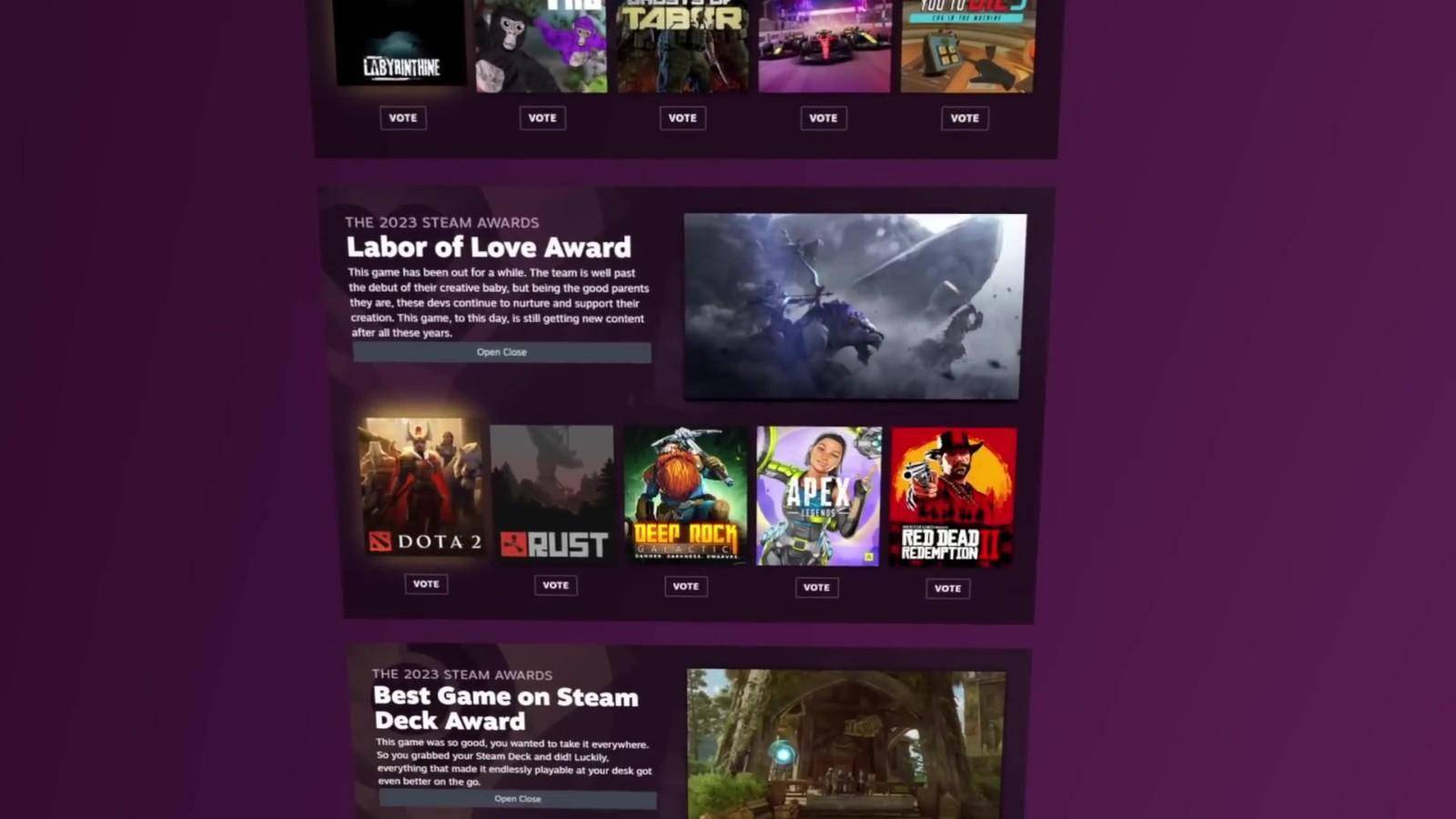 Steam 冬季特卖会还将通过揭晓 Steam 年度游戏、“Labor of Love”和“最佳配乐”等奖项的获奖者来庆祝 2023 年推出的主要视频游戏。