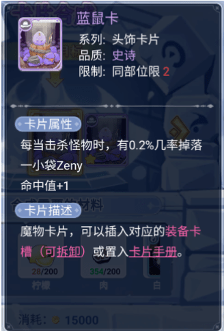 4. 挂机时的掉落:使用「蓝鼠卡」可以在挂机时有 0.2% 的几率掉落一小袋 Zeny。
