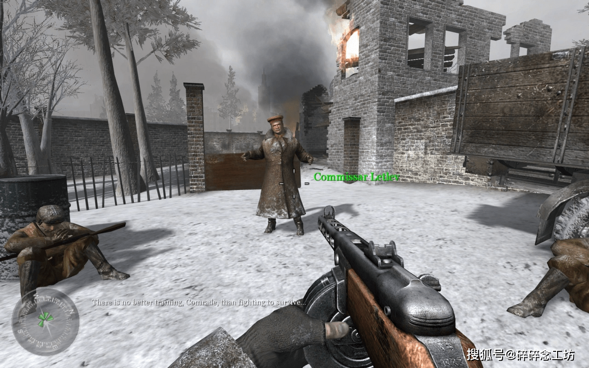 游戏的故事从苏军战役开始,1941年12月17日,正值莫斯科保卫战期间,玩家扮演列兵瓦西里(Vasili),首先要在政委同志的指导下,完成射击、刺杀、投弹等基本操作训练,这里有个很有意思的彩蛋,如果你拒绝拿起武器,或者在射击训练时故意多次射偏目标,政委就会警告你三次,最终宣布你是叛徒并朝你开枪。训练结束后便直接加入了战斗,利用烟雾弹通过敌人机枪的封锁,最终引爆炸药摧毁德军装甲车完成任务。