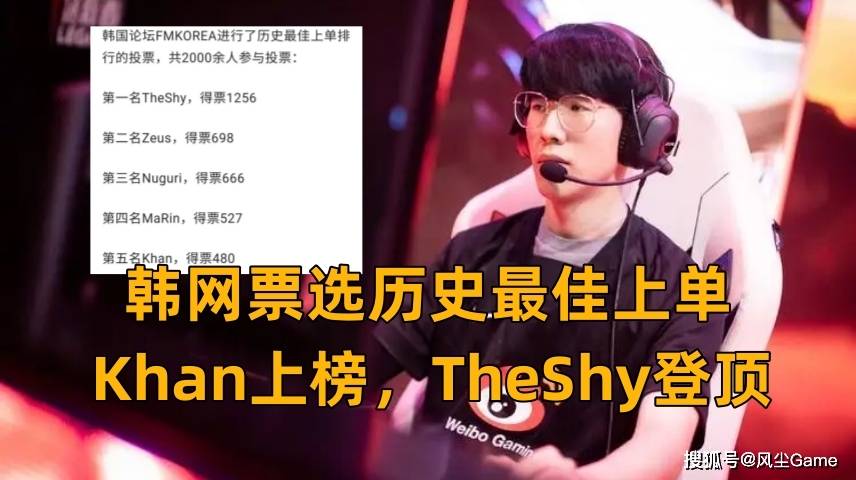 除此之外,同样是世界冠军的Nugrui,拿到了666的票数,而已经退役的Marin,得票527票,甚至连无冠的Khan都上榜,排在第五的位置,票数480,这五人就是目前,LCK玩家认可度最高的上单选手,TheShy决赛1-16的战绩,能够在投票中碾压宙斯,让人匪夷所思。