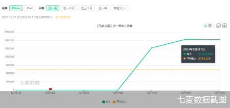截至12月18日,《元梦之星》《蛋仔派对》均位居iOS免费游戏榜前排。收入方面,据七麦数据,《元梦之星》iPhone端近一周收入已超521万美元。