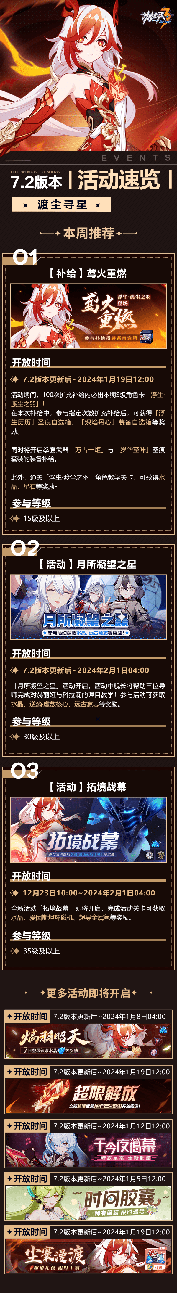全新活动「月所凝望之星」即将开放,参与活动可获得水晶、远古意志、逆熵·虚数核心等奖励。
