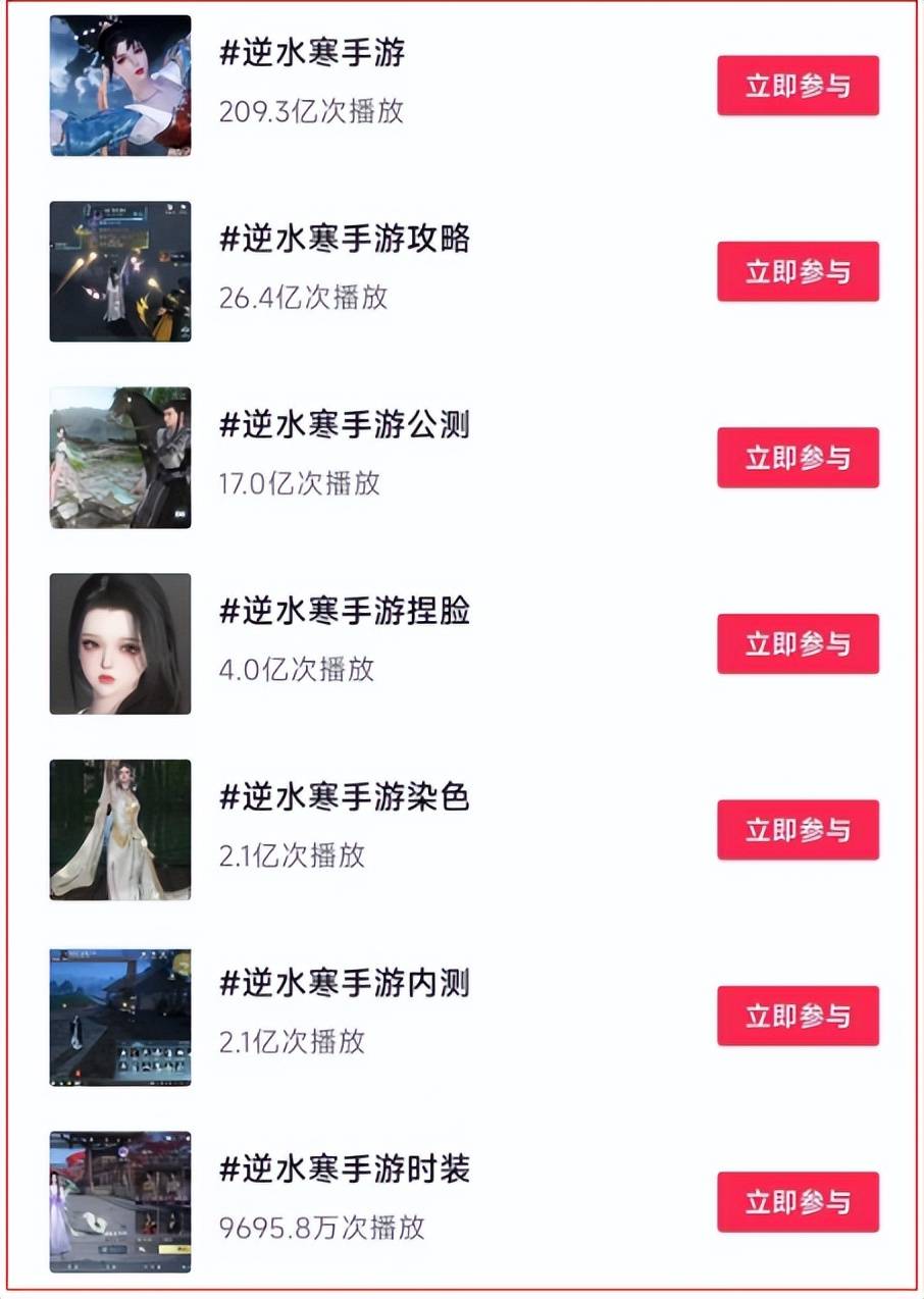 在微博、抖音等热门社交平台,《逆水寒》手游都是热度极高的话题,光抖音上总播放量就达到了210亿左右,整体热度可见一斑。