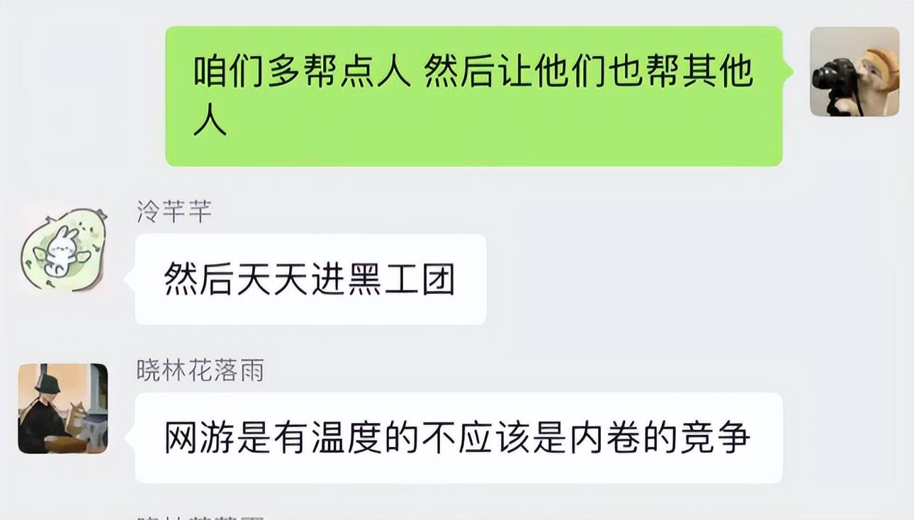 甚至于在《逆水寒》手游当中,其他mmo网游里带有一丝贬义的“黑工团”,也成为了老玩家调侃那些热衷于不求回报帮助萌新打副本的大佬词汇。