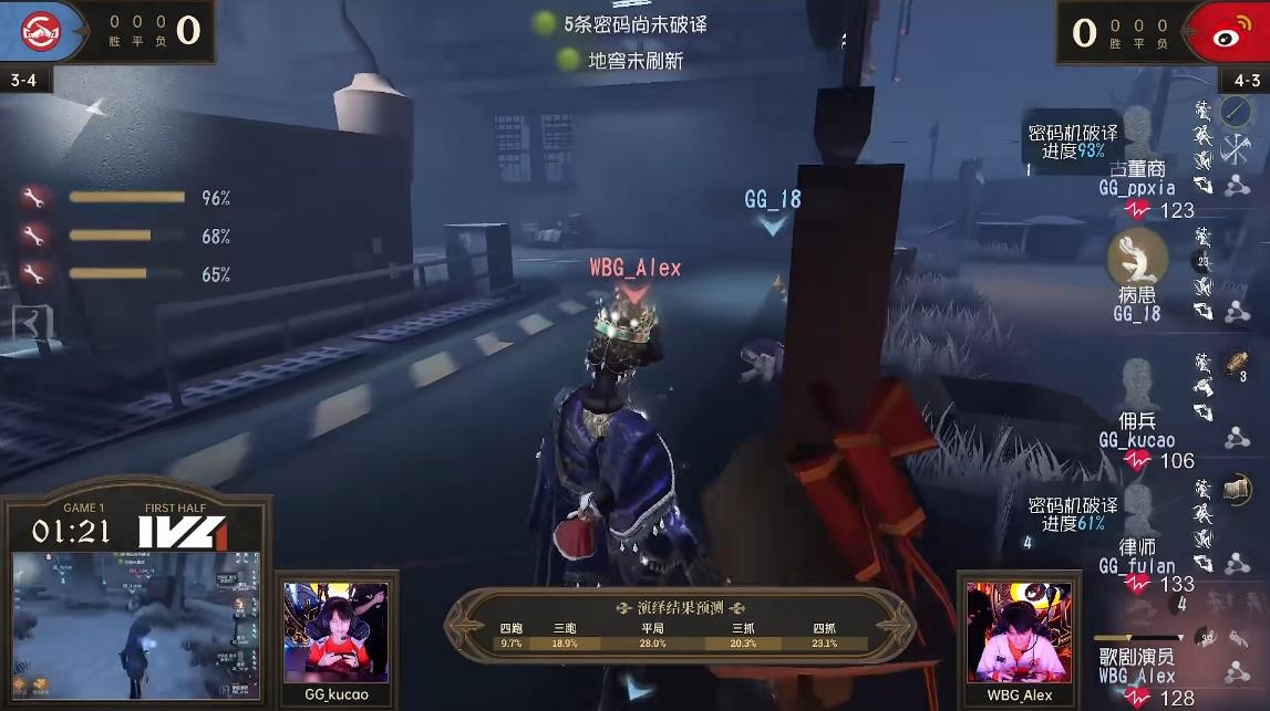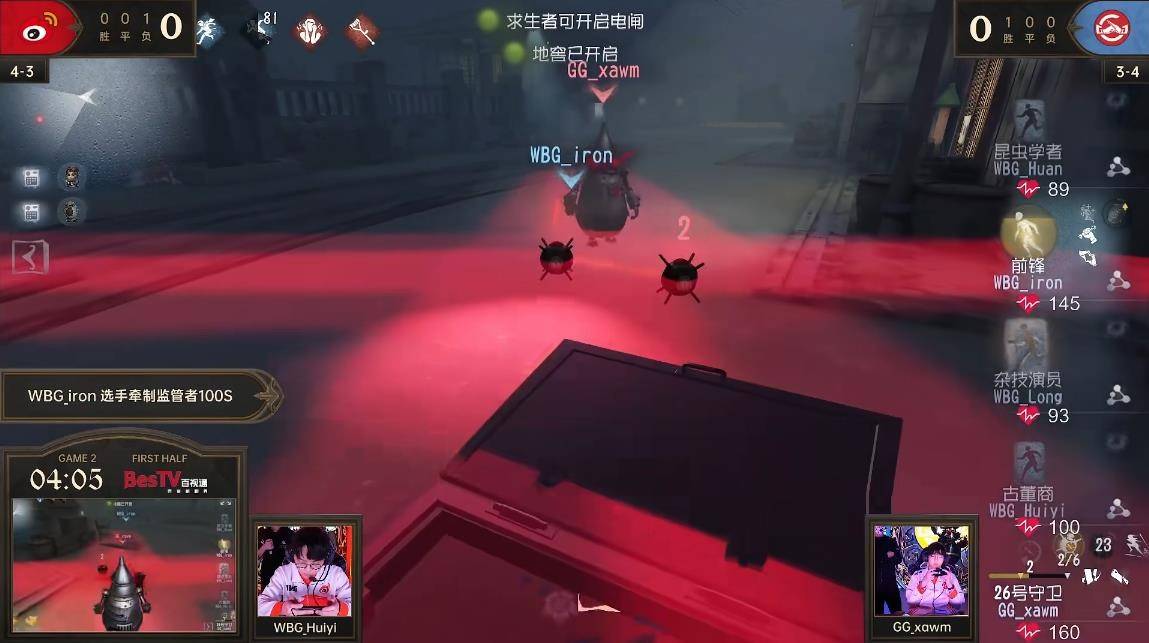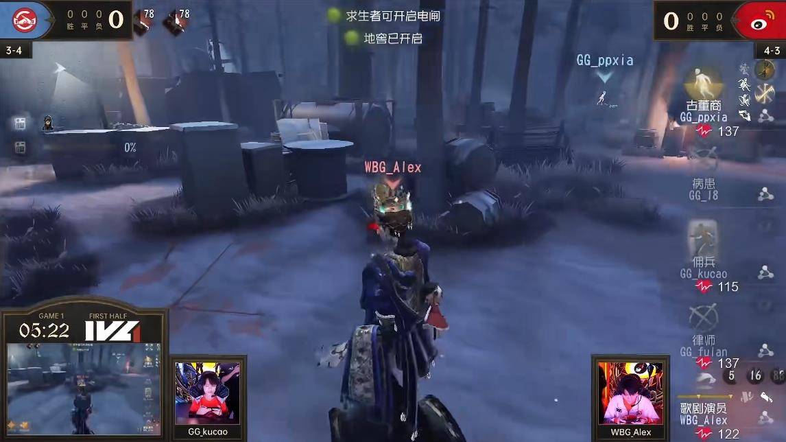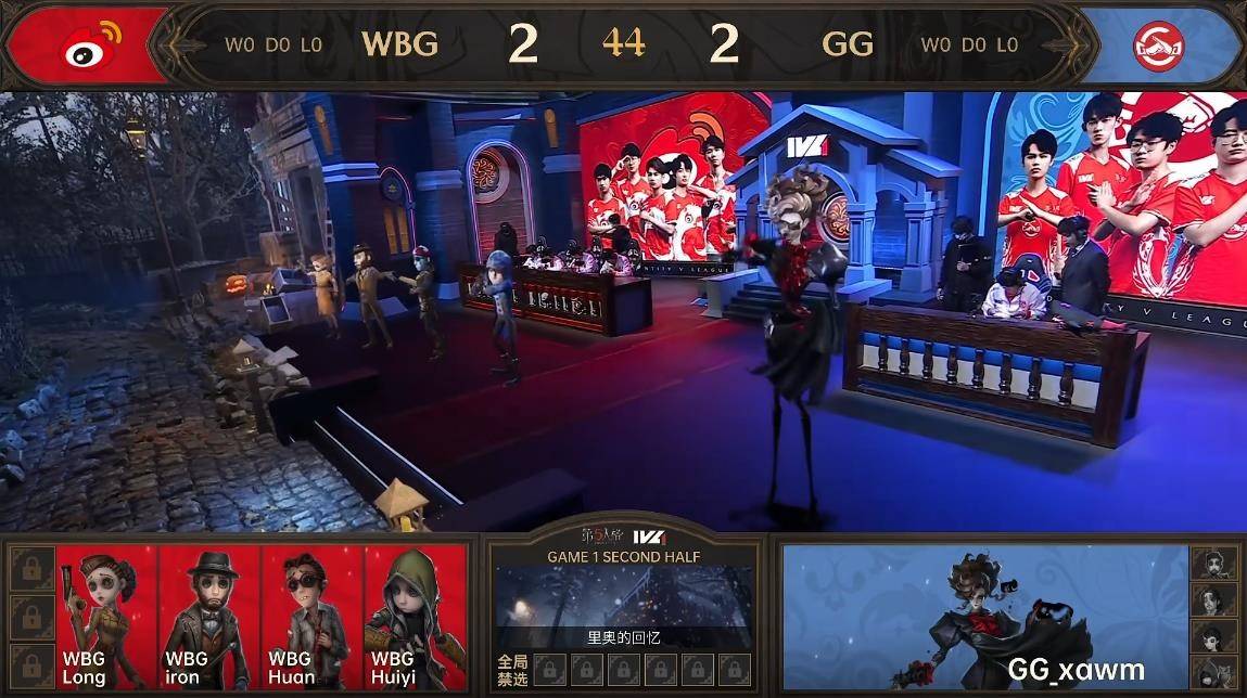 求生者WBG战队——Ban:歌剧演员Pick:WBG_Long杂技演员 WBG_iron前锋WBG_Huiyi古董商 WBG_Huan昆虫学者