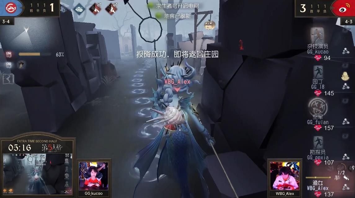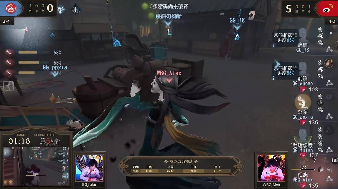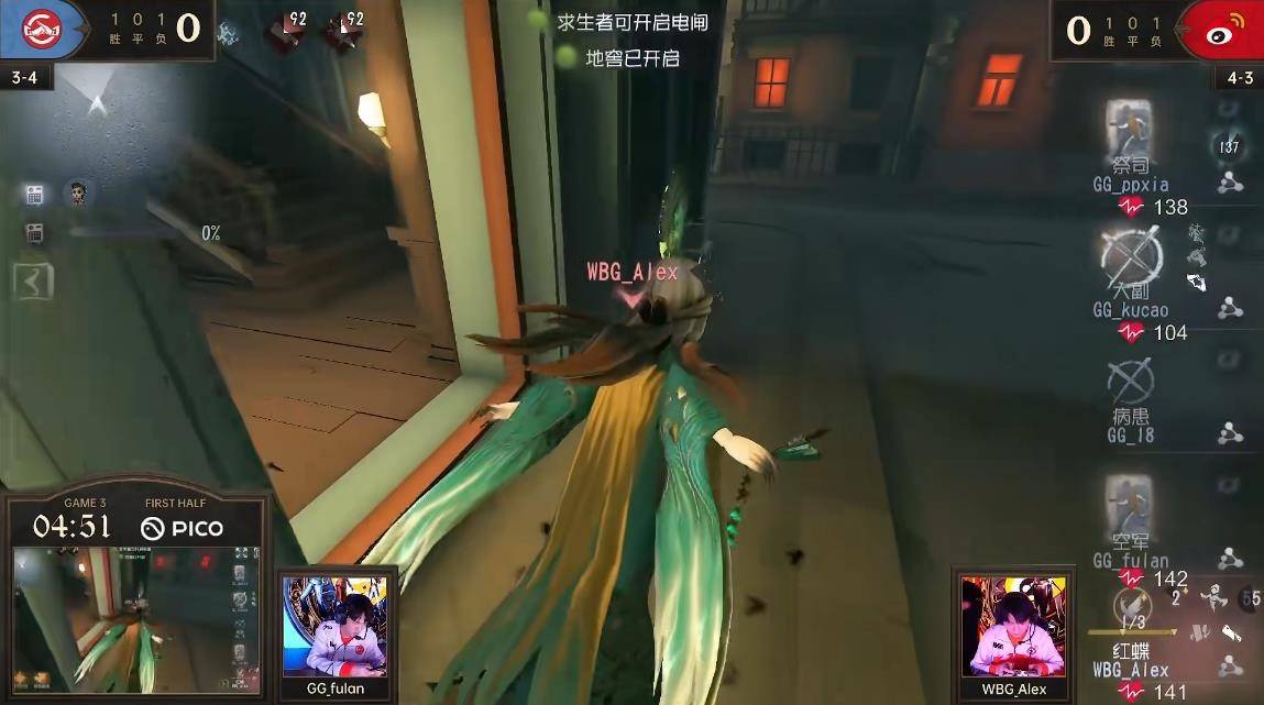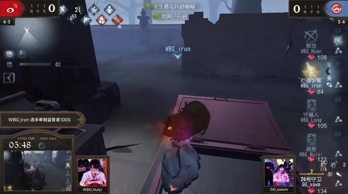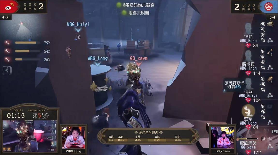 求生者WBG战队——Ban:歌剧演员Pick:WBG_Long杂技演员 WBG_iron前锋WBG_Huiyi古董商 WBG_Huan昆虫学者