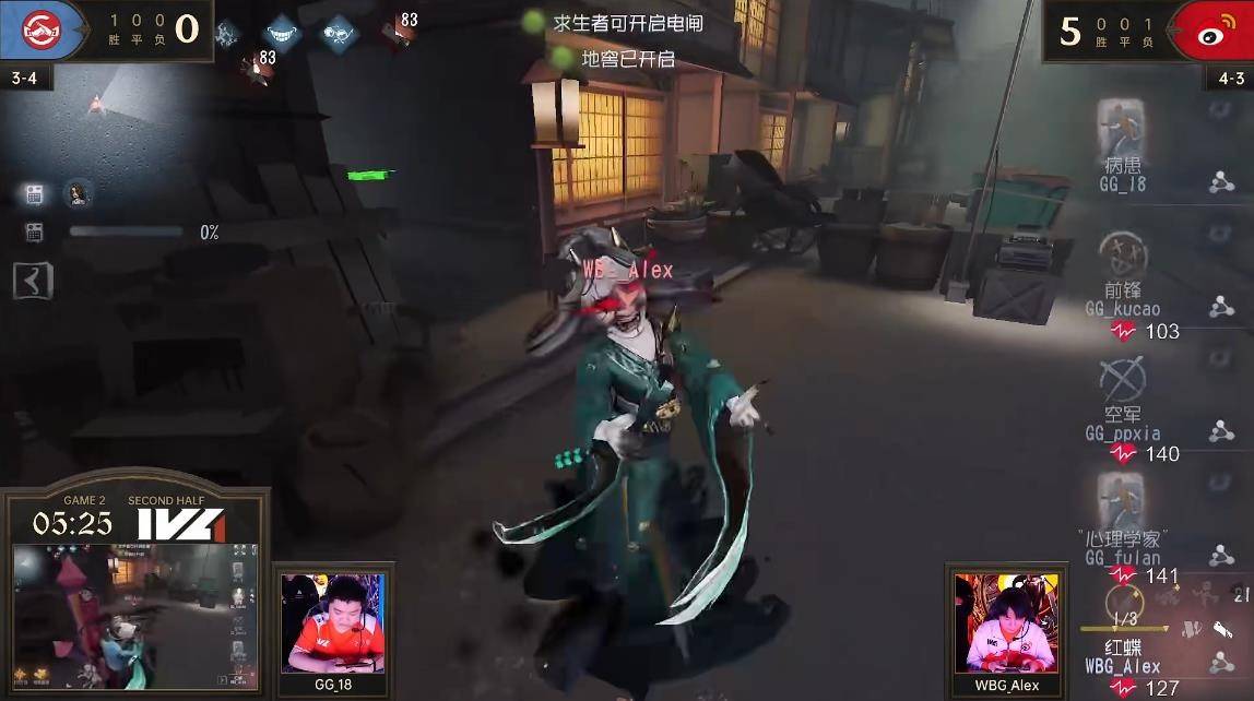 监管者WBG战队——Ban:冒险家 大副 空军 杂技演员 Pick:WBG_Alex歌剧演员