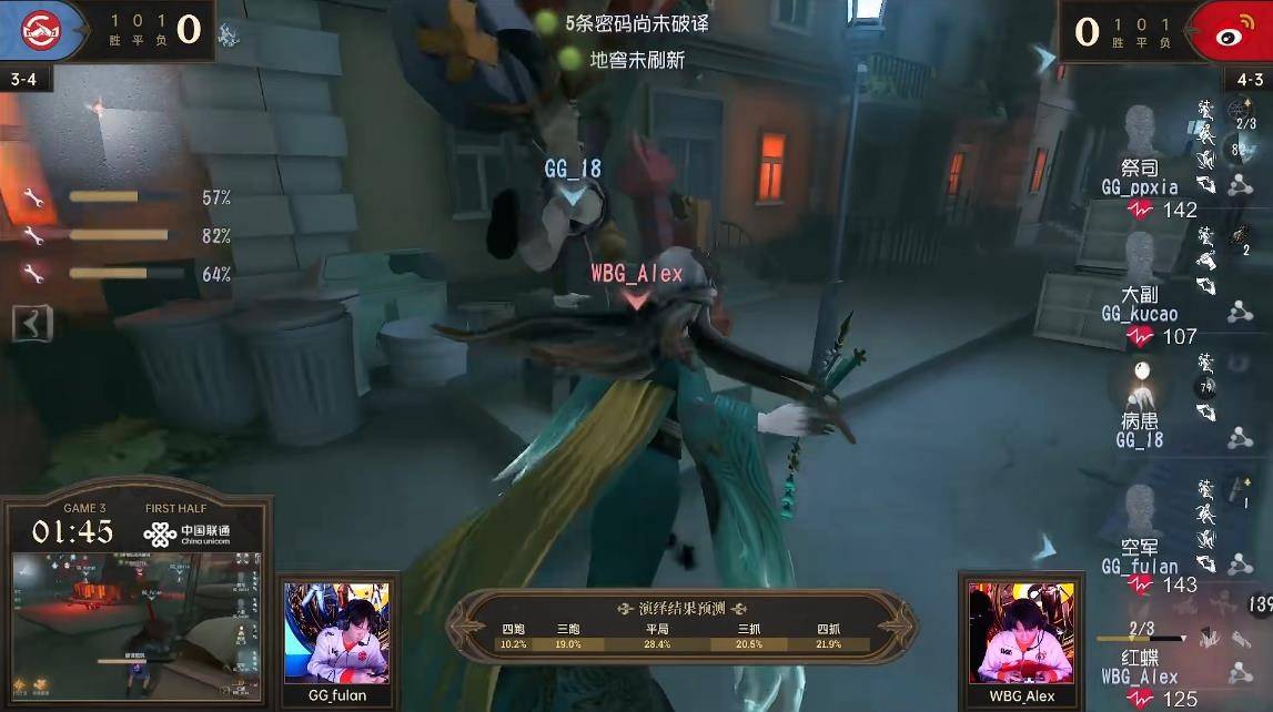 淘汰病患后,开门战监管者选择追击大副将其击倒挂上,空军破译开大门,空军和祭司成功出门,最终双方2抓2出战平