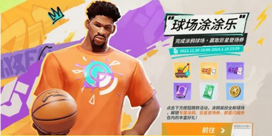 还有新增的球场涂涂乐活动,截止日期是2024年1月10日24点。你只需在“活动-球场涂涂乐”页面点击“前往”按钮,即可跳转到游戏官方微信小程序并参与球场涂色活动:邀请好友助力可获得涂鸦罐,使用涂鸦罐解锁球场,就可以获得巨星登场券、群星汇集券、专属涂鸦等丰富奖励!每日成功帮好友助力,可获得金币奖励,邀请新玩家或回归玩家助力还可获得额外奖励!