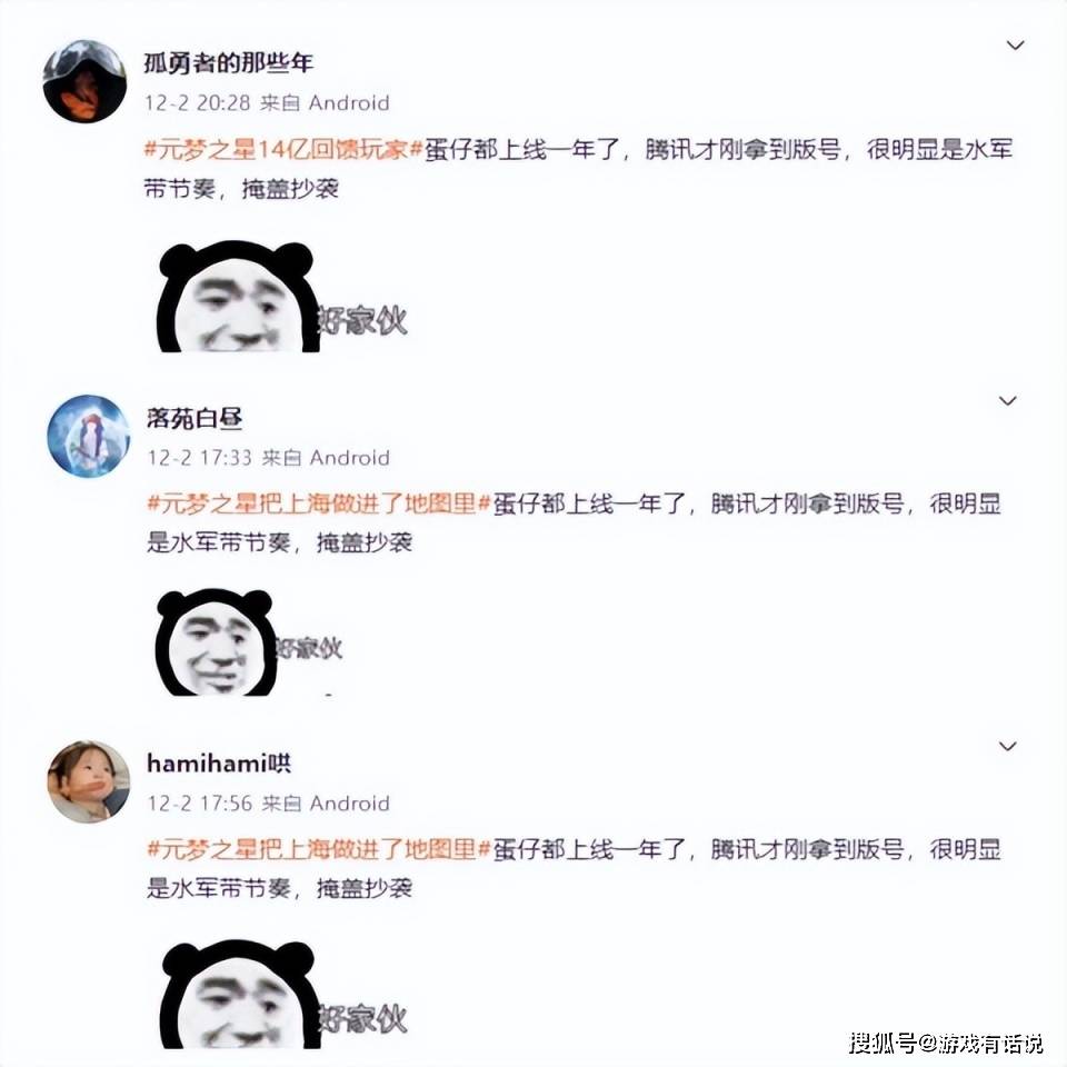 有趣的是,还有大量账号在不同的话题下使用着高度相似的话术,似乎有一种有组织、有预谋的感觉。这引起了人们对这场“声讨”是否是真实玩家行为的质疑。是否有一些游戏厂商或个人通过这种水军恶意抹黑和攻击的方式来故意破坏《元梦之星》的声誉?