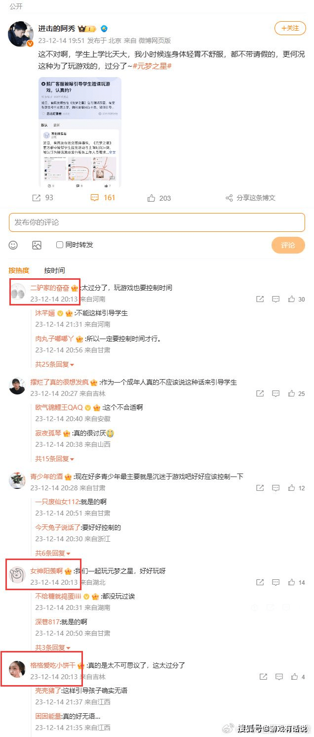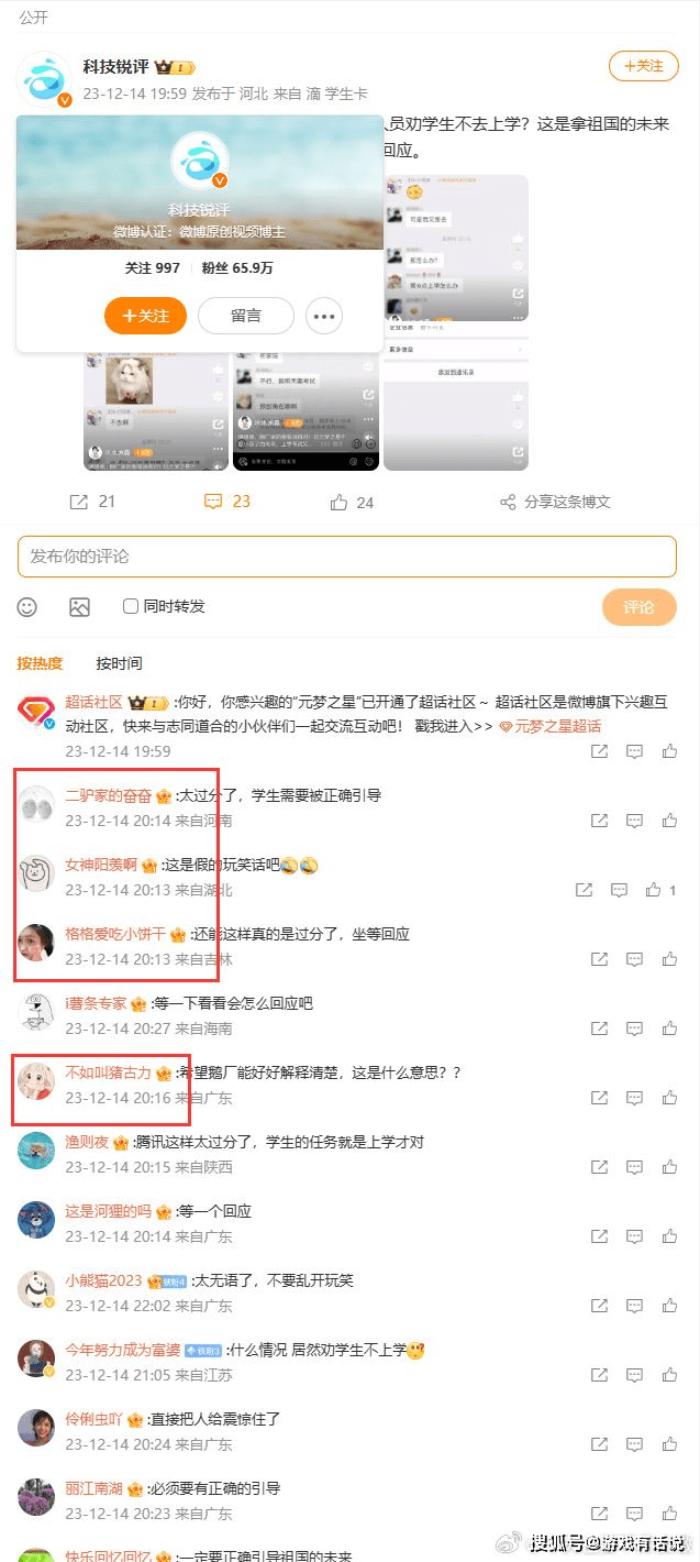 更为荒谬的是,有一些账号竟然发布一些虚构事件,最典型的就是“学生玩《元梦之星》翘课”,这明显是给《元梦之星》扣上一顶“莫须有”的帽子,随后进行恶意攻击。