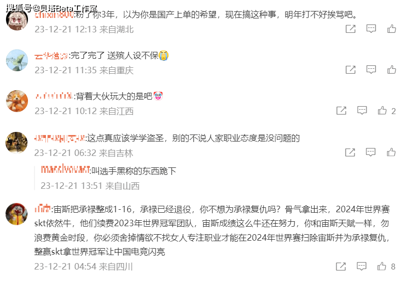 只能说不要随便给职业选手加人设,特别是一些年少就打出名声获得高薪的选手,确实很容易利欲熏心顶不住诱惑,不是每个人都是Faker的。当然Bin只是换女友太快了,还没有证据表明劈腿,所以也没必要现在就狂骂他。