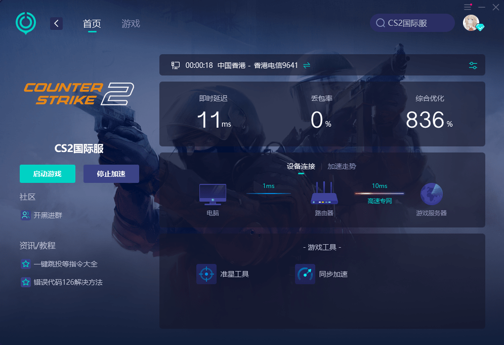 二、点击就能将网络优化,就能顺利游玩CS国际服啦!