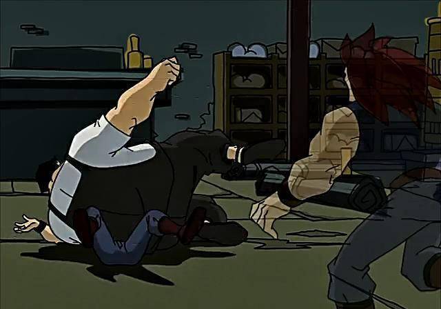 阿福与特鲁因为争夺符咒,两个超乎常人的壮汉这天打斗打得十分激烈。本来是阿福一直都稳占上风,不过他居然被脑筋不太灵活的特鲁摆了一道。特鲁让阿福重复一下他本来就很繁琐的招式名称,结果阿福一分神就被特鲁乘机打倒在地了。