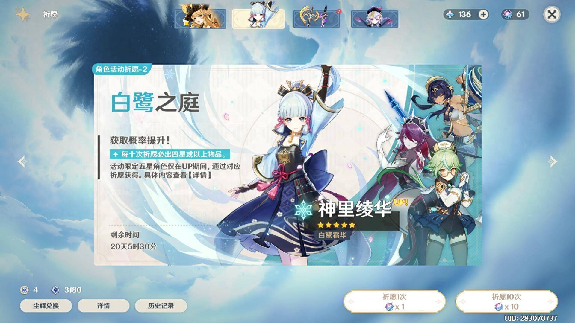 这段时间,作为原神的老朋友,稻妻的三老婆,神里绫华的狗,想必很多玩家抽完娜维娅之后,第一时间就开始养神里绫华了吧,我也是这么想的,因此,我开始各种养神里绫华,可就在这段时间,有萌新跟我分享了个事情,那便是他运势特别好,居然小保底抽到了神里绫华,对此,问我该怎么样?当时,我作为56级的萌新,我当即就劝阻他,不要养。