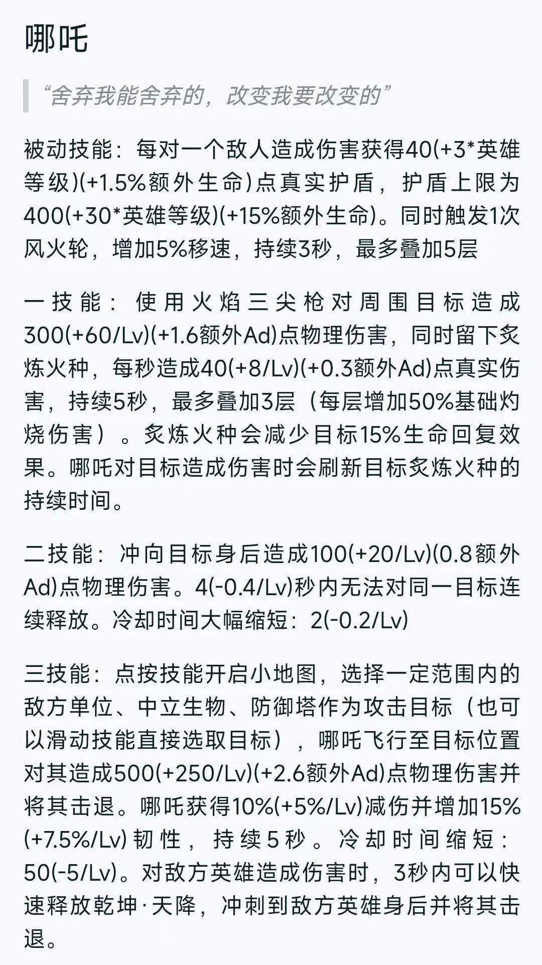 新版本哪吒已经上线抢先服,之后会上线正式服。改动还是比较大的,至少在玩法上变化很大,特别是大招,不再是全图选对手,而且变成了一定范围内选择各种目标,包括敌方英雄和小兵、建筑,甚至中立生物。