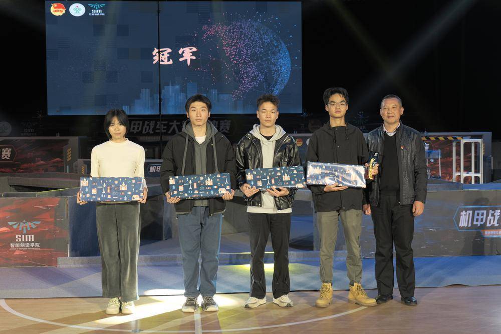 决赛现场,选手们灵活操作,默契配合,战术层出不穷,配合绚丽的舞台,让观众享受了一场赏心悦目的视觉盛宴。同时,今年采用了网络直播赛事,吸引了8000多人线上观赛。经过六场的激烈厮杀,最终“威猛先生”队战队脱颖而出,抱得总冠军奖杯,“墨子号”队获得亚军,“代码敲不动”队获得季军。