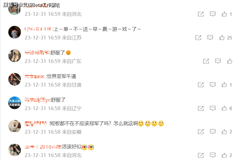 然后就是WBG的官博也炸了,虽然只是一场德杯,而且还没有派出全主力,但是评论区却受到了很多的嘲讽。不少网友嘲讽WBG太菜了,世界亚军德杯一轮游,止步8强,真的舒服了。也有人阴阳怪气:不是说上路不送早赢了吗?就这吗?活该好死。