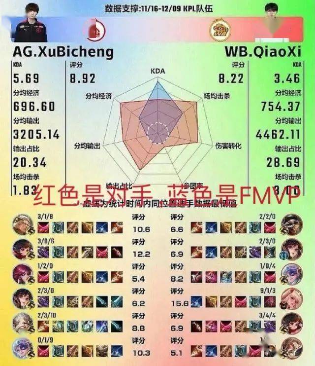 赛后数据显示,一诺这位射手选手在对面射手的强势表现下表现平平,2023年整年的FMVP英雄仅赢过一场。尽管世界冠军杯中公孙离的胜率和出场率都不低,但这位选手却从未选择过她。