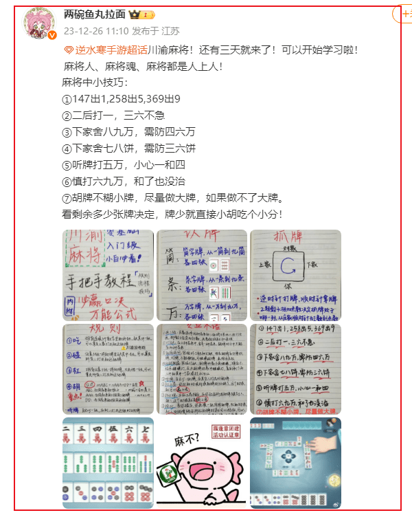 五万网友围观了这位学霸的搓麻技巧都纷纷点赞,这哪是做游戏攻略,根本就是在游戏里考研吧!