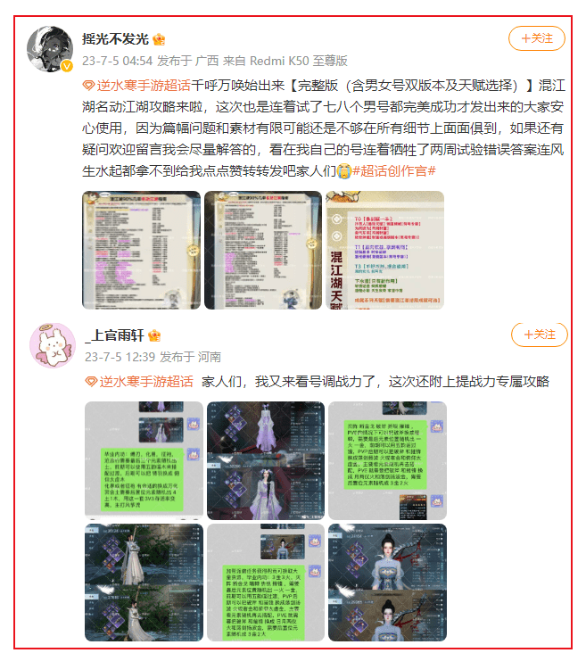 连游戏里蕴含无限可能性的“混江湖”玩法,都有学霸连开十几个号,把所有的选项都摸清楚,连夜制作成100%完成度的攻略。