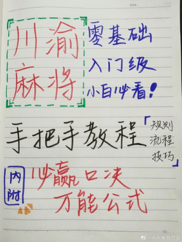 学霸不仅自己学,还掏出笔记本做攻略,把四川麻将的攻略都仔仔细细写出来,手把手教大家一起学搓麻秘籍和必赢口诀、万能公式……