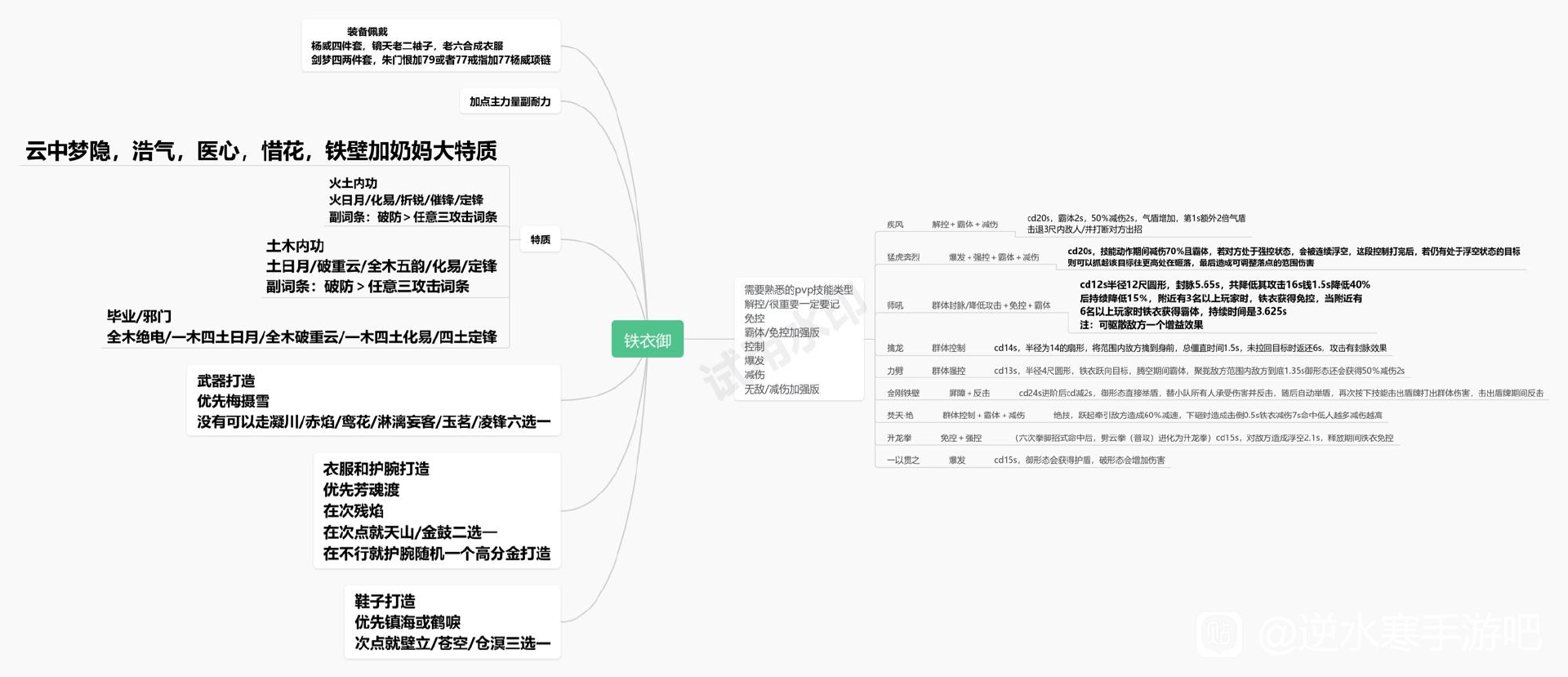 看完了这位学霸为逆水寒麻将萌新们准备的攻略,不得不感叹逆水寒里真是人才特别多,大学生们纷纷在游戏里考研。不止是打麻将,早前还有玩家用思维导图制作每个不同职业的技能运用和装备选择: