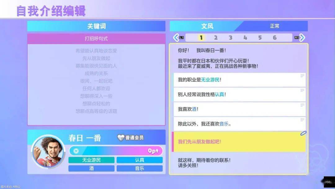 交友软件——用时下流行的方式,邂逅全世界的美女。首先,玩家需要填写春日的自我介绍并选择头像,制作一份讨喜的个人档案。在聊天时,请选择符合对方喜好的回复和表情,打开女孩的话匣子吧。当玩家成功打动女孩,将有机会和她相约见面。和女孩约会后,春日的综合能力值将得到提升。