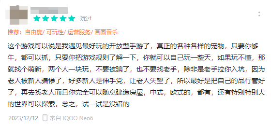 说到这里,我们也许可以下一个结论了:开篇提出的两个答案都对,却又不全然正确。在陀螺君看来,一款上线3年山海经题材的沙盒手游,之所以还能保持如此强盛的生命力,题材和玩法固然重要,但更不可忽视的,是持续的革新迭代,以及项目组做长线运营的恒心。