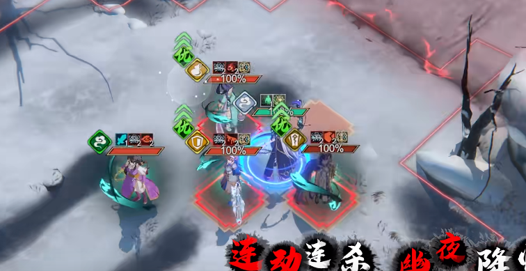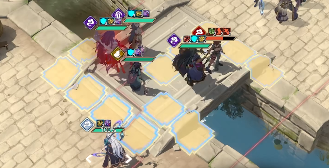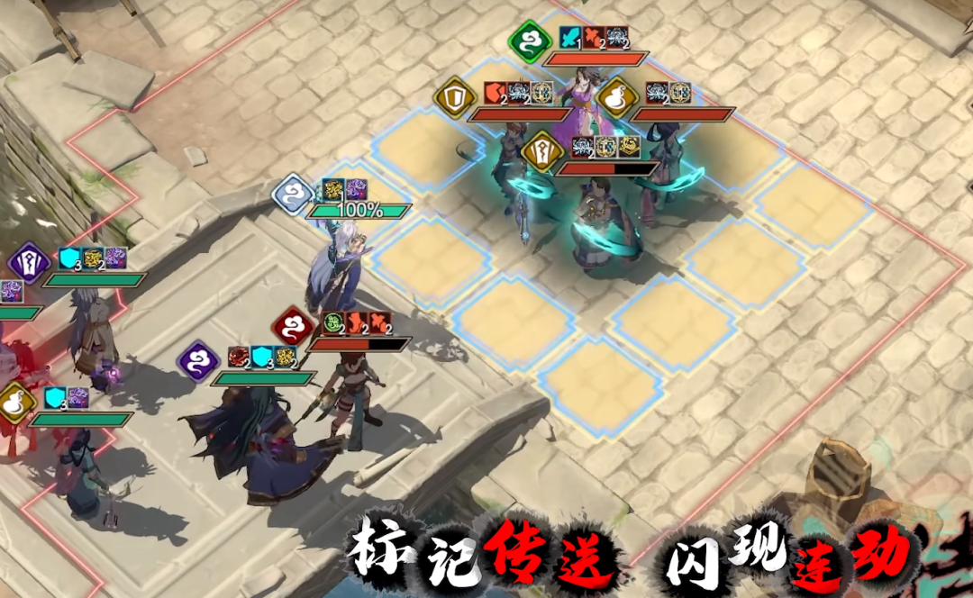 接着幽黎幽在再动2格后使用了一个单体输出技能,伤害不高但却又一次对敌人周边1格的敌方施加了天赋中的debuff效果,此外攻击后黎幽还能再次传送到受到天赋debuff影响的敌人周边1圈范围内,所以维一判断幽黎幽的天赋除了给十字格的敌人施加debuff效果外,同时还会有战后传送定位的效果。