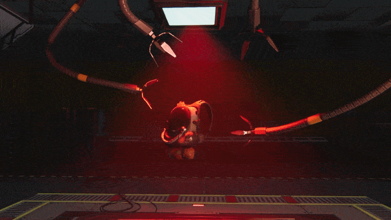 在游戏的一开始,玩家的视角被固定在一个记录实验的设备上,亲眼目睹了一个满嘴专业术语的研究员如何遭遇了一场诡异的异象。在警报的蜂鸣声中,实验室里的一切都失去了自身的重力,通过那个缓缓上升的摄像头,我们看到了那个仿佛被某种无形力量侵蚀的研究员正在绝望中进行最后的挣扎。