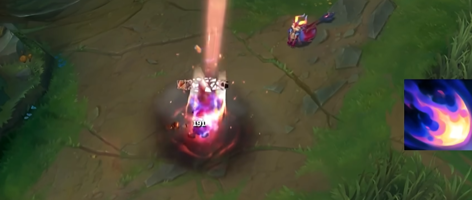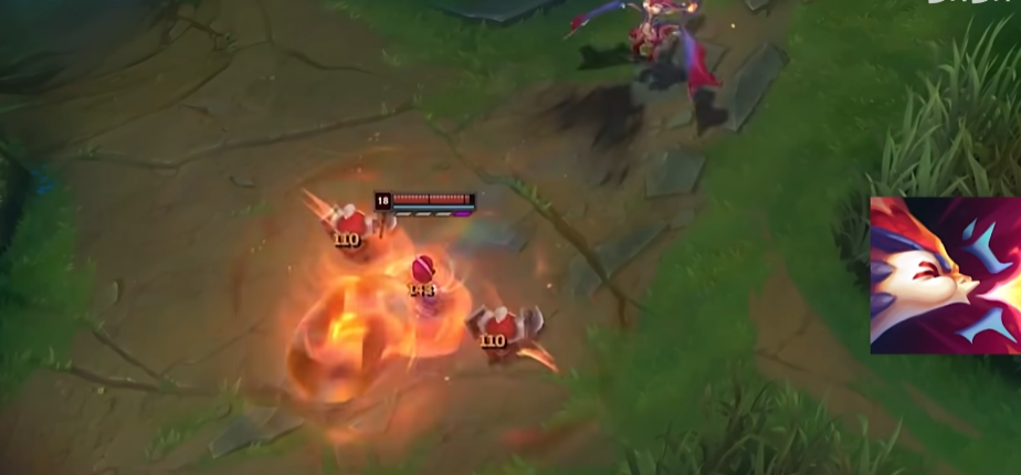 R技能召唤自己的妈妈,妈妈先是飞行一段距离,然后喷出火焰队中心敌人造成额外伤害和减速。如果R技能命中了斯莫德,会获得来自妈妈的治疗效果。