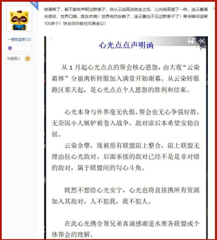 不过从目前的情况来看,心光点点的管理似乎还是不愿意向陌上联盟道歉,反而是发布了一则公告,打算和对方死磕到底。