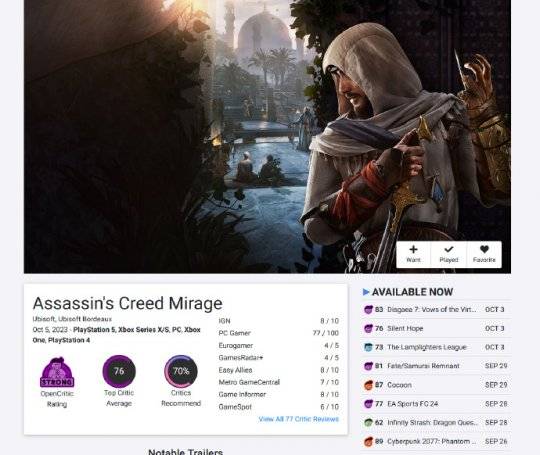 反观去年下半年推出的《刺客信条:幻景》这一正统续作,均分只有76左右。对于育碧来说,他们已经很久没有获得过这样的高评价了。