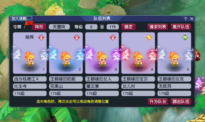 本次采用的队伍为常规五开配置,具体门派如上图所示。