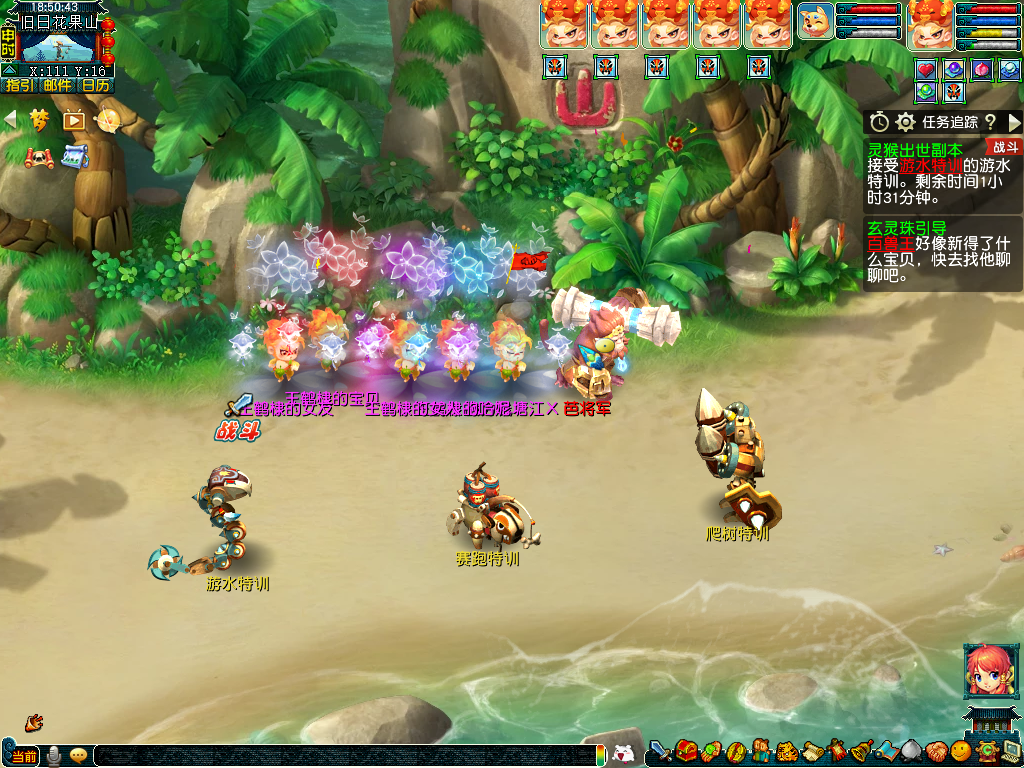 游泳试炼中共有三个项目,输出高的门派在做这类任务时候有优势。