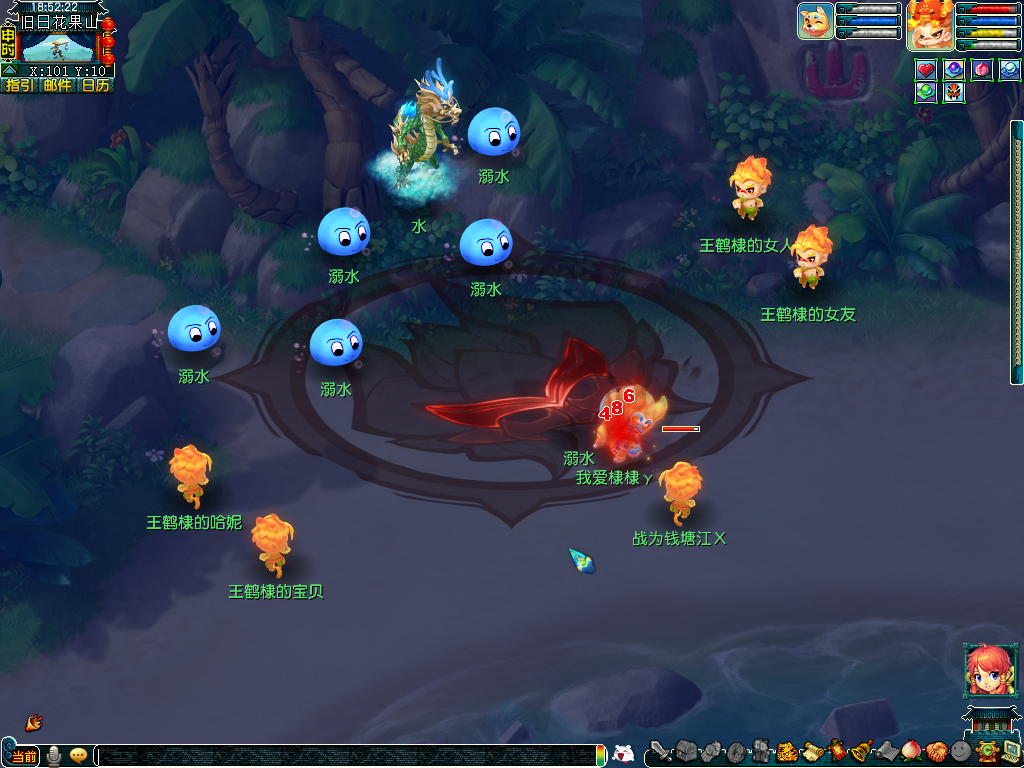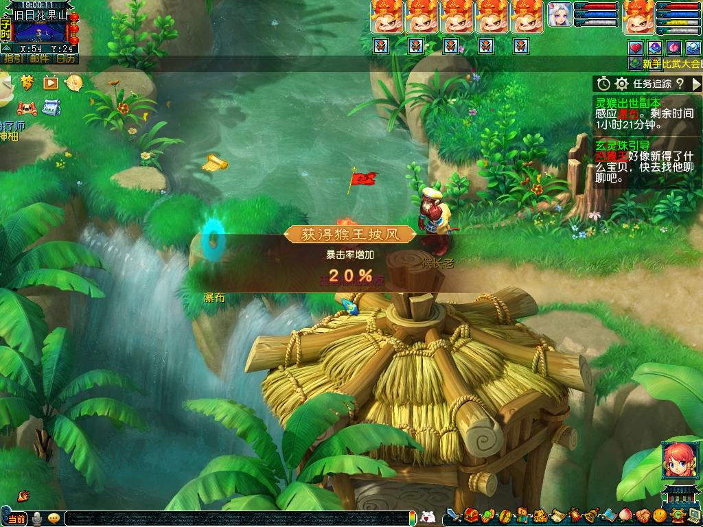 进入新地图后可与瀑布对话,开启【灵猴出世】副本第七场战斗。这场战斗中怪物均以法系为主,且伤害较高,大家需要注意自身血线。另外,这场战斗在每回合结束后也会刷出“溺水”,战斗节奏越快,难度也就越低。