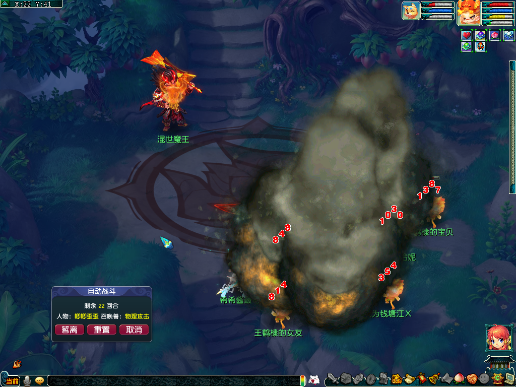 本场战斗中,主怪拥有较高的法伤,如果觉得血线有压力,可以通过回复、使用罗汉金钟等特技规避伤害。