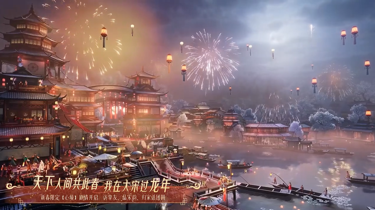 除此之外大家还可以在游戏中体验到在大宋过年的乐趣,在新春版本开启之后,各位小伙伴们能够体验到新春限定剧情【心境】的开启,跟随剧情的推进一起欣赏有着浓厚传统文化氛围的新春佳节吧!哦对了,在新春限定剧情中,大家还会遇到一些“老熟人”,一起来看看他们都是怎么过春节的吧~