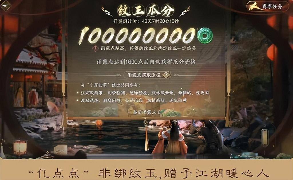 作为《逆水寒》手游上线以来的第一个新年,福利必须安排到位,狂撒66万亿交子666亿的绑定纹玉绝对能让各位high翻天。不仅如此还有优质内功、自选毕业级装备和染色材料相赠,主打一个福利拉满!不过最让玩家们期待的还是此次新年活动将会赠送非绑纹玉,通过呆“小芽初萌”一起玩瓜分高达一个亿的非绑定纹玉,如果你欧气爆棚,甚至还可以获得绑定鉴凿、自选稀有内功甚至是天赏石等顶级奖励,各位小伙伴们是否已经开始心动了呢?