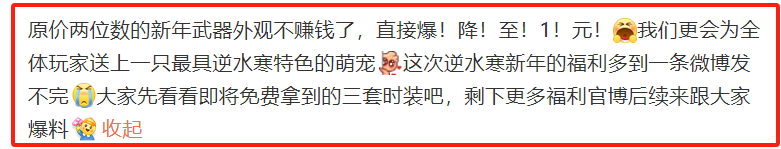 甚至最新的武器外观还直接被降价到了1元获取,萌宠也直接调整成了白送的状态。