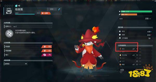 2、要选择有生火技能的帕鲁,比如红小鲨、焰巫狐、燎火鹿等等