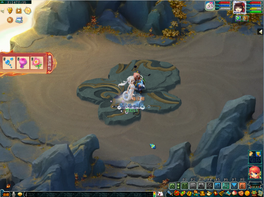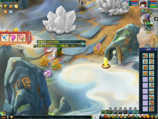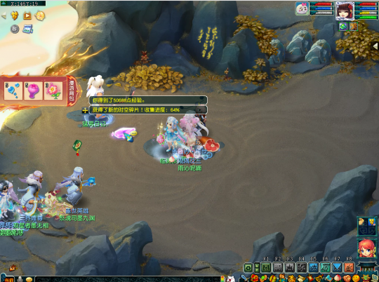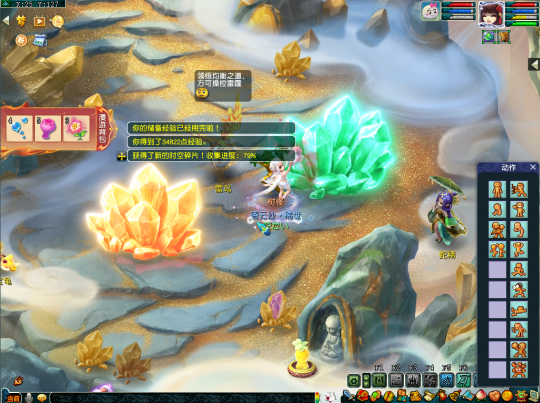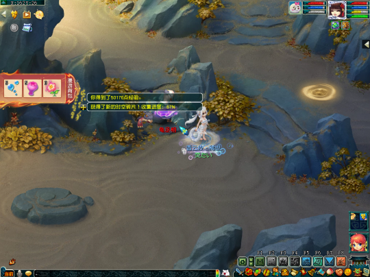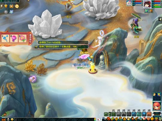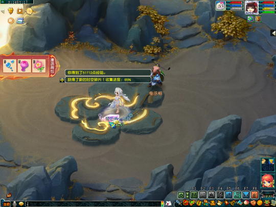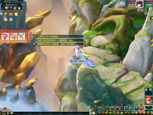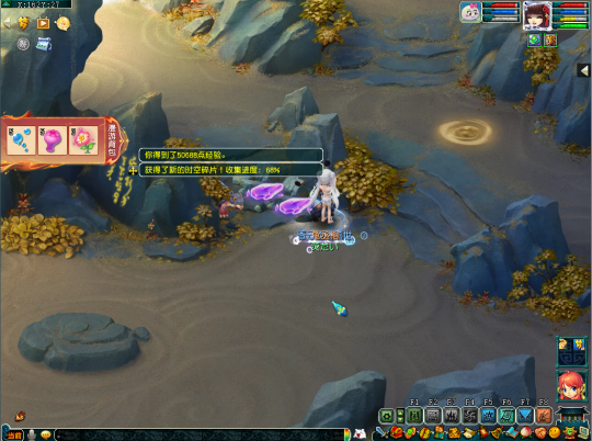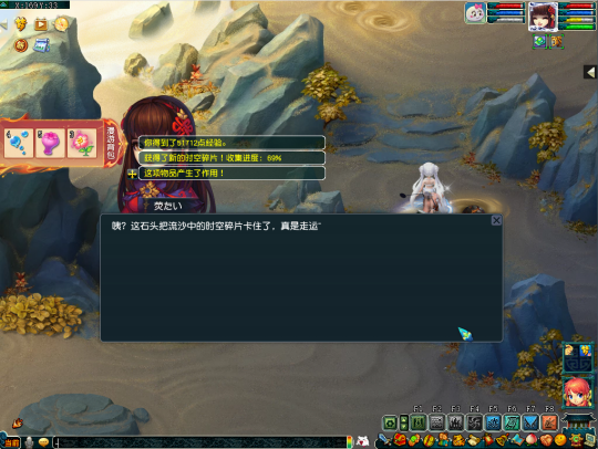 第二十四个任务坐标在(139,20)处,这里需要多人合作,先由一个人猜下小石头,再由三个人踩下大狮驼,只有两块石头同时踩下才能获得时空碎片。
