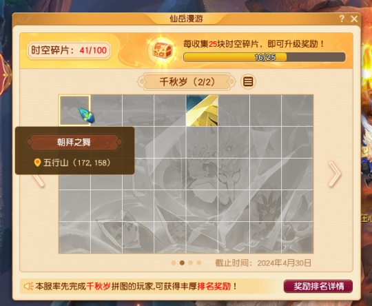 第二十五个任务需要回到旧日五行山,对石板使用攻击动作,将其拼凑成一个完整符文后,就可以获得一枚时空碎片。