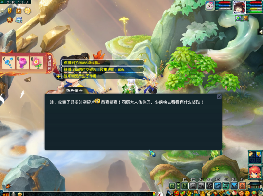 当然,也可以穿越回现代花果山,在坐标(119,13)处依次给予老鼠精长寿面、烤肉、桂花丸,即可获得时空碎片,如果这里没获得,就说明第二十二个解密任务已经完成了。