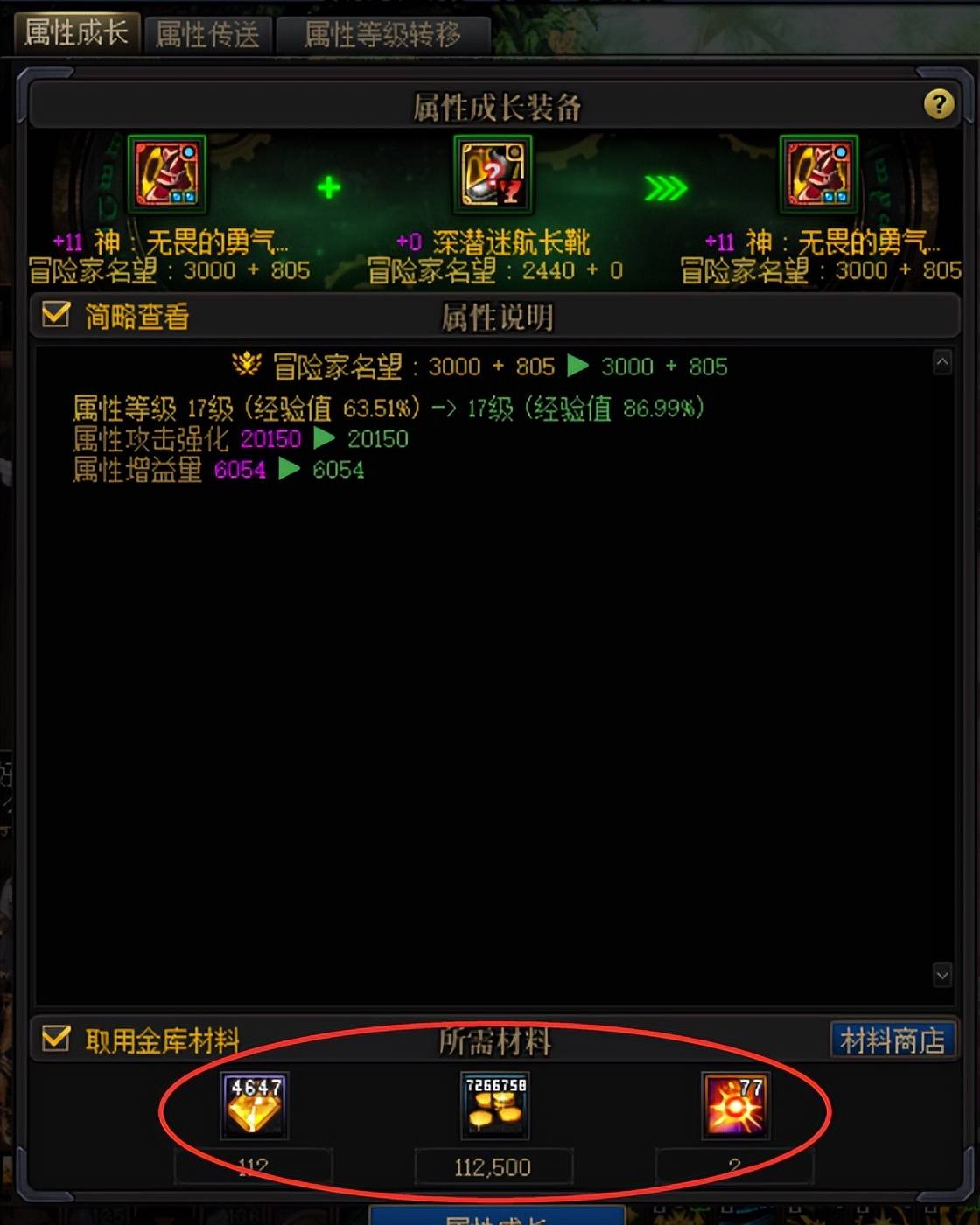 PS:兑换的成长券仅限于装备和材料装备等级都在75级以下。